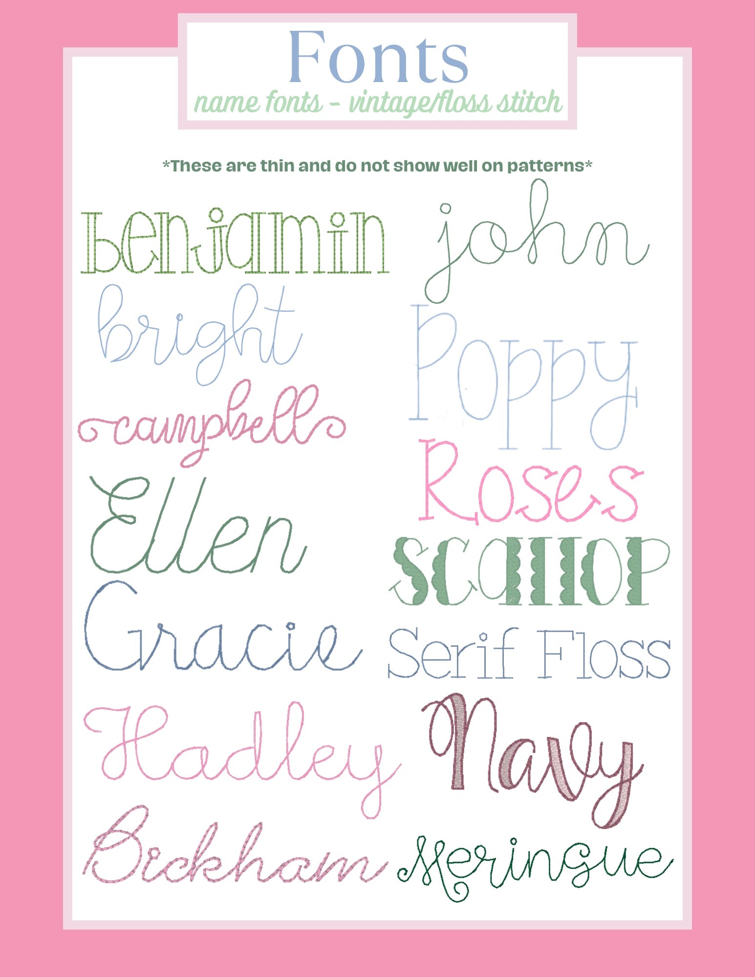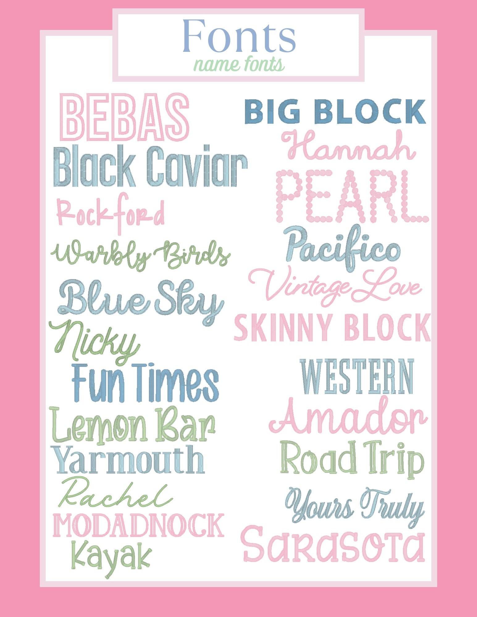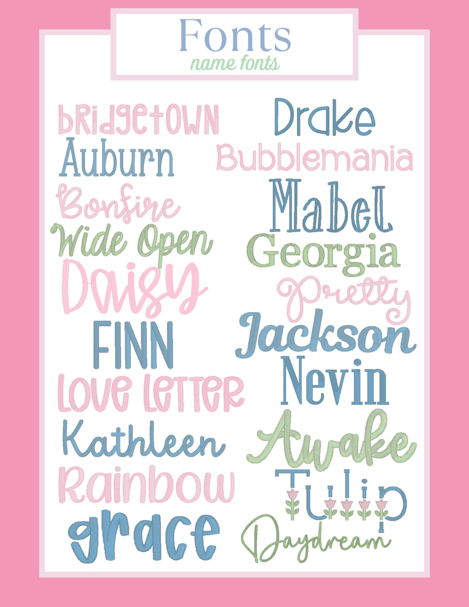 Please indicate the name you'd like stitched, the font choice for the name (or I can pick for you!), the color(s) thread you'd like used.