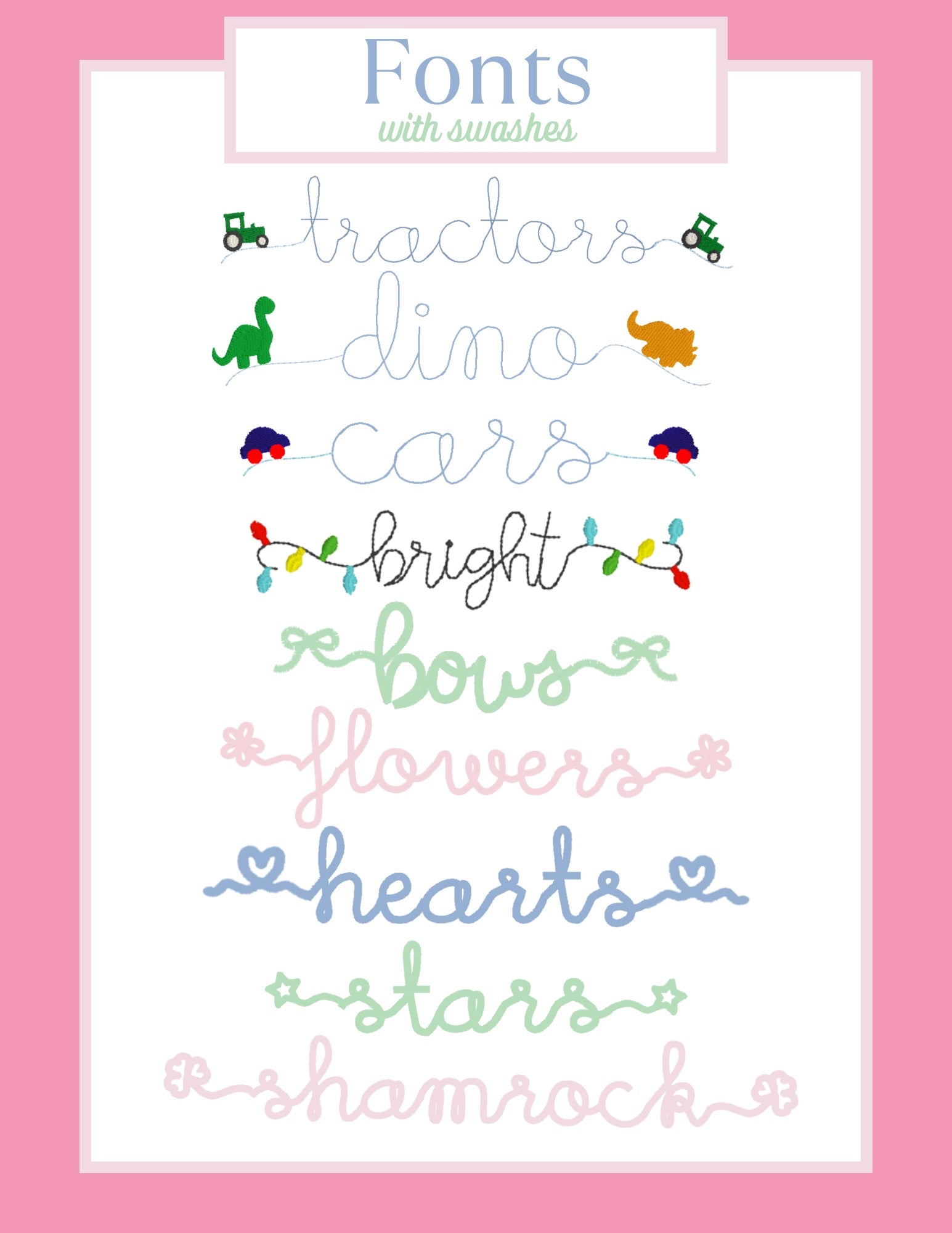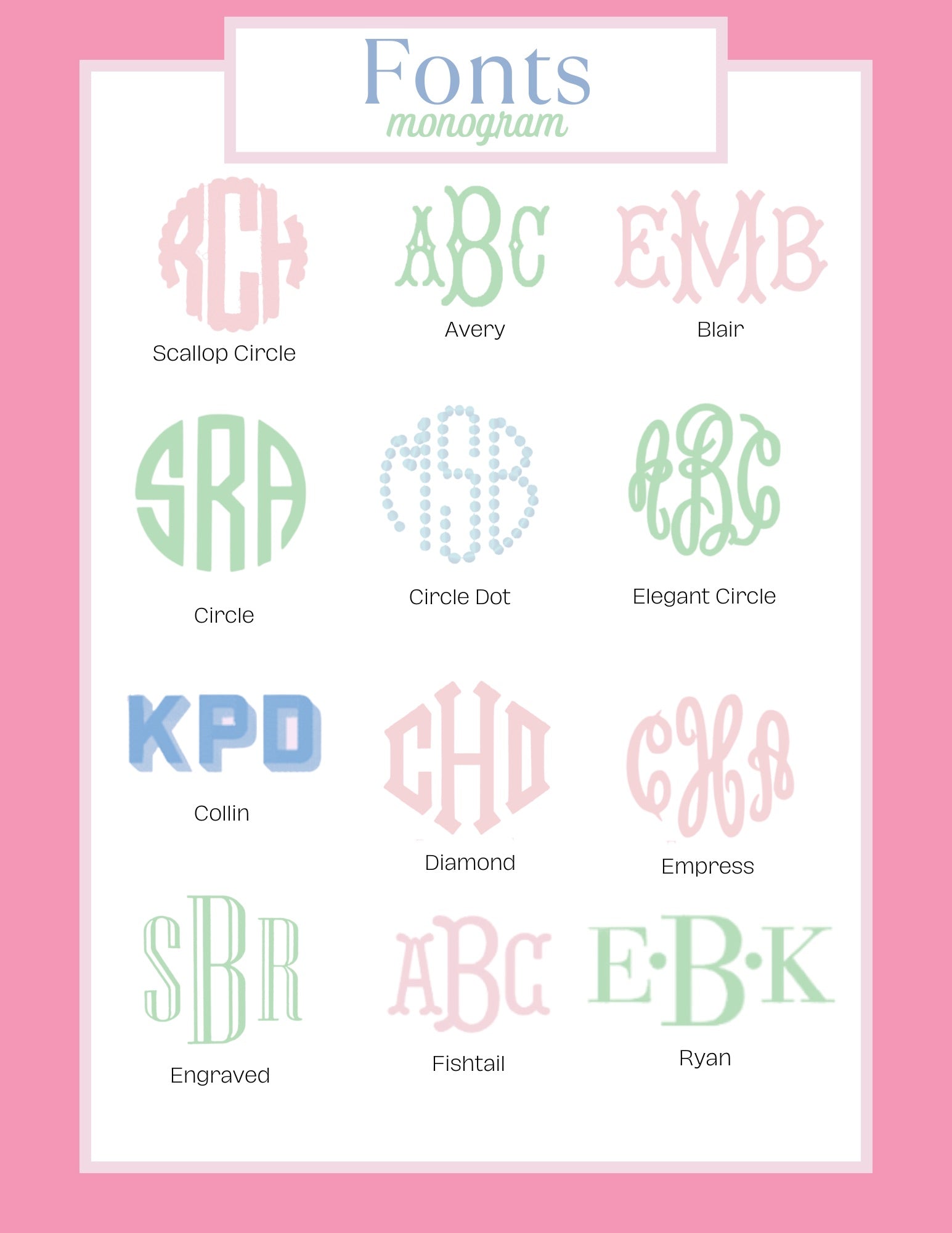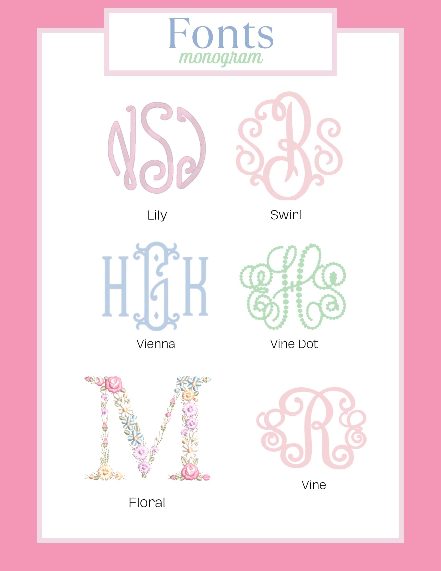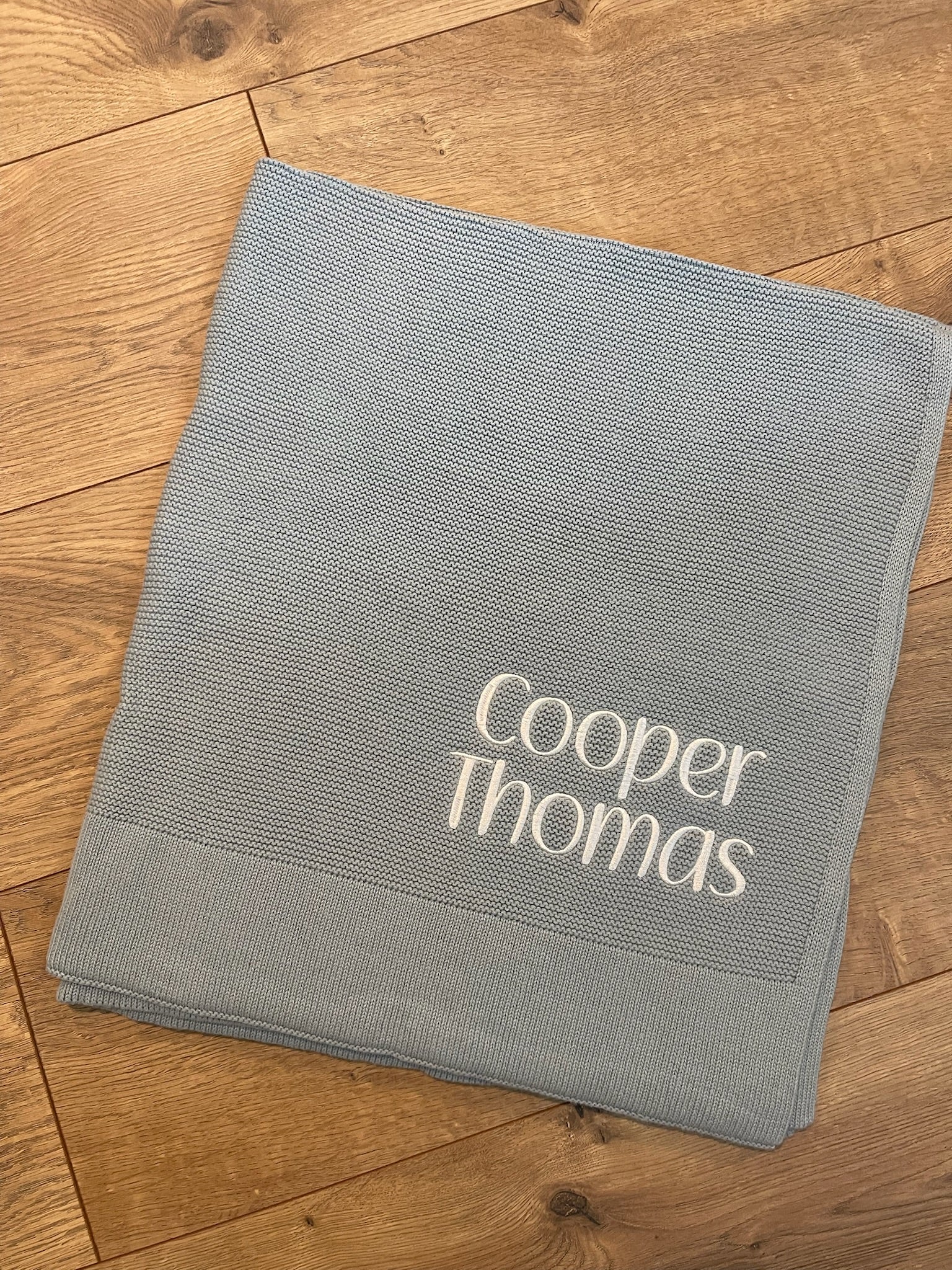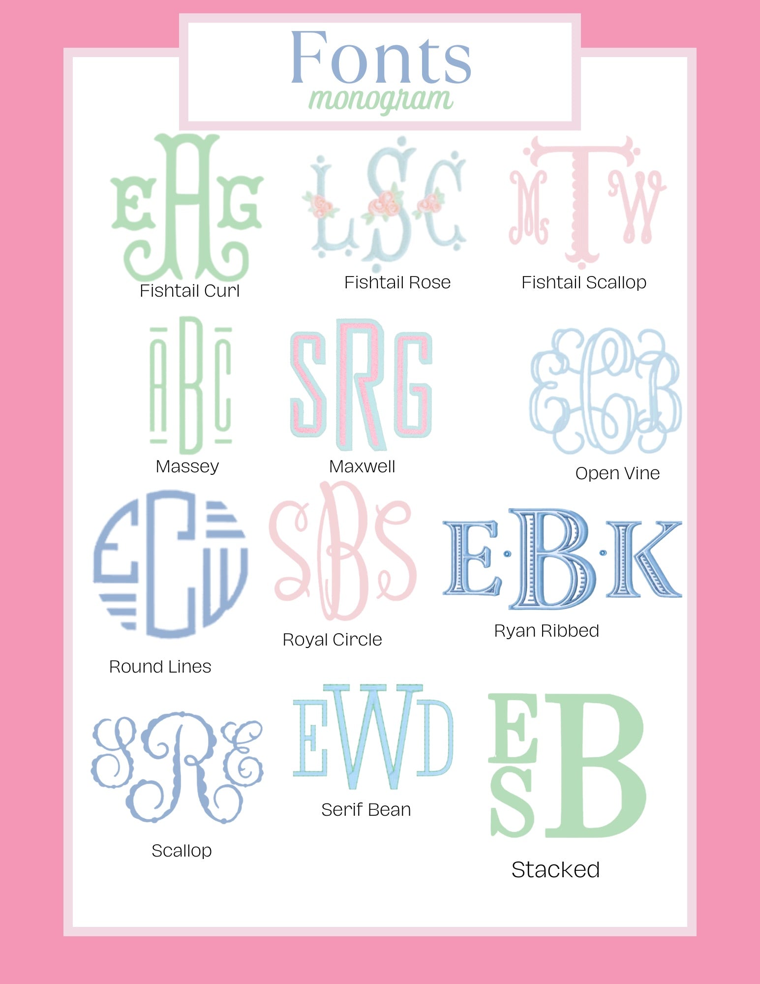 Please indicate the name you'd like stitched, the font choice, and the thread color(s) you'd like.